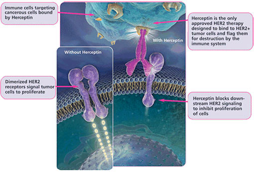 disrupting the chain of events needed for tumor cell proliferation. In contrast, targeted