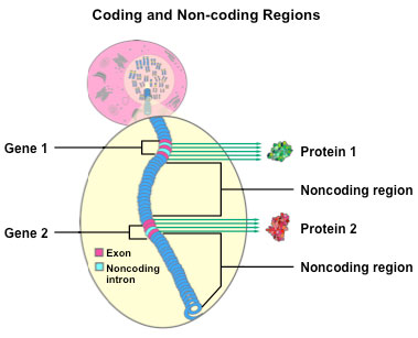 - The parts on the gene we do not use are called noncoding or introns.