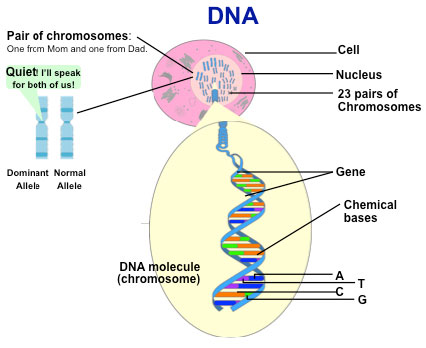 twisted around each other to form a "double helix." We each have 23 pairs of